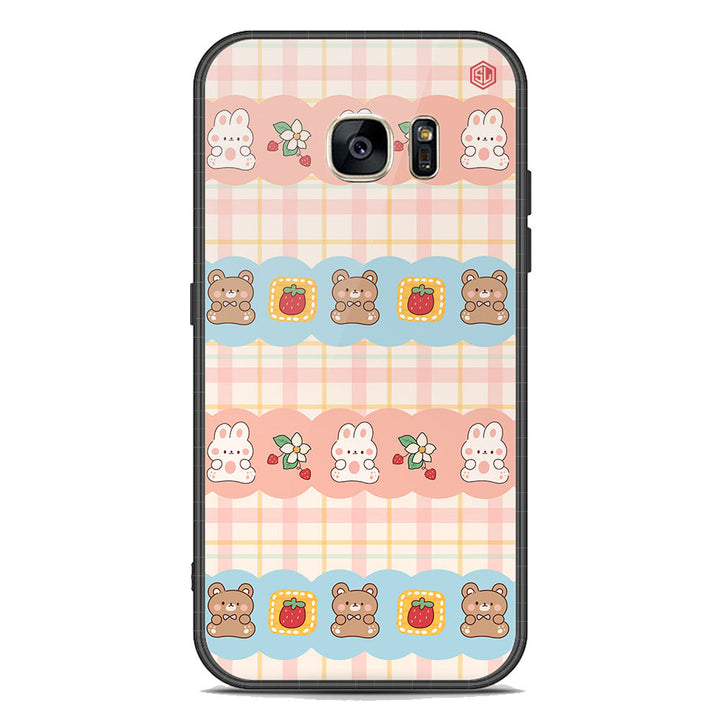 Cute Korean Design Series Soft Phone Case - Premium Glass Case - Design 5 - Samsung Galaxy S7
