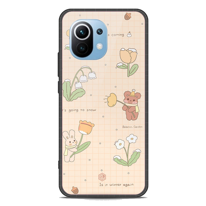 Cute Korean Design Series Soft Phone Case - Premium Glass Case - Design 4 - Xiaomi Mi 11